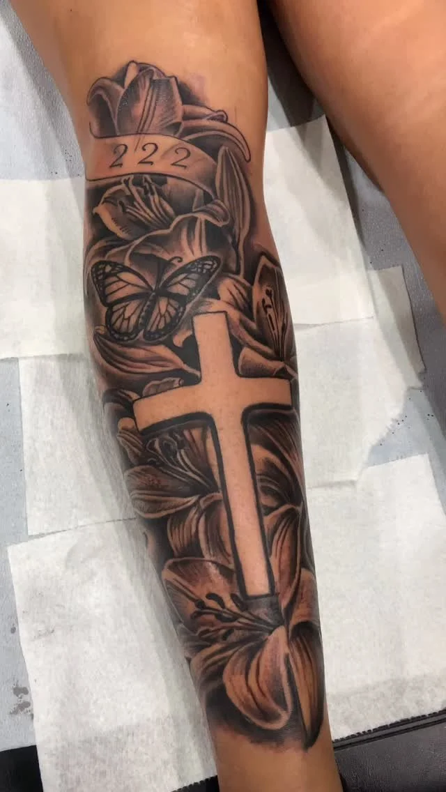 Floral piece and cross done by @isisfloreees