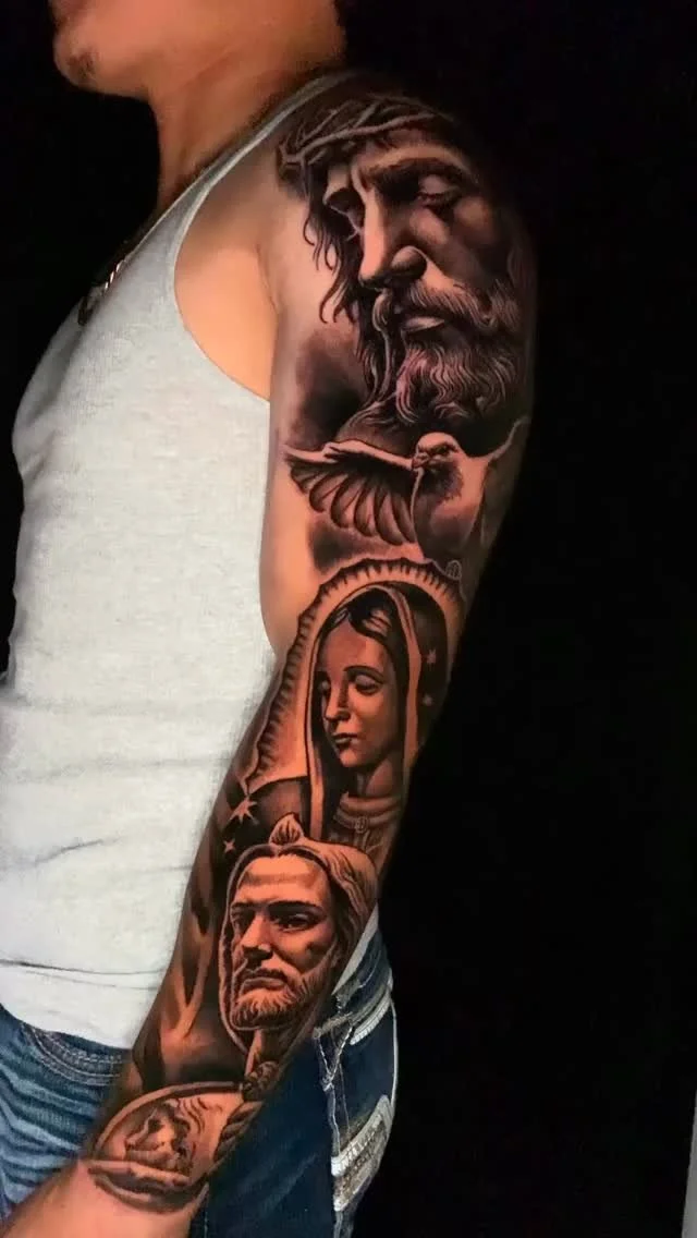 Religious shoulder piece done by @edgar.barrueta